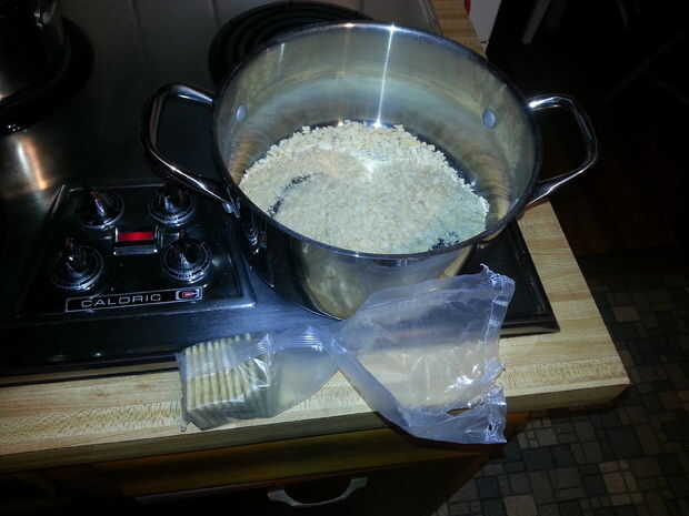 Tiempo para resolver todas las agresiones. Mostrar las galletas que tiene jefe! Triturar a 3/4 del envase en el recipiente grande (o en mi caso un pote, causa que necesita un recipiente cuando eres un soltero...) Básicamente lo puede hacer cualquier forma. Sólo les aplastar entre las palmas de mis manos. Puede ponerlos en una bolsa zip y ejecutar un perno de balanceo sobre ellos. O ponerlos en una bolsa zip lock y libra luego con el puño en el mostrador. Incluso no tienen que estar bien que triturada, siempre y cuando no existen como medio un pedazo de galletas izquierda, eres bueno.