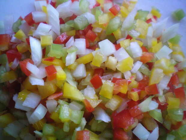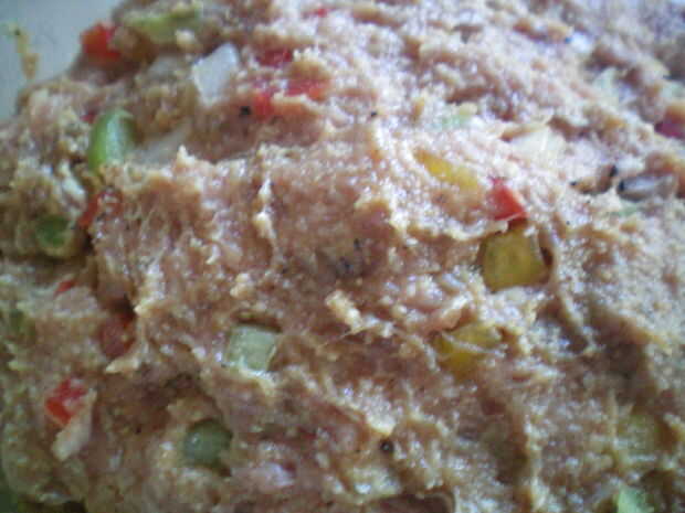 Cupcakes de pastel de carne hechos de una manera sencillaPaso 1: Mezclar los ingredientes Usé 1 y medio de libras de carne de hamburguesa1 gran Jalepeno1 pimiento amarillo3 huevosEspecias (eneldo, comino, Chile en polvo, ajo en polvo, perejil)SalPimi