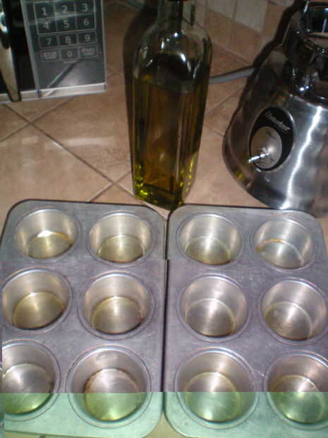 gota en suficiente aceite para cubrir el fondo de cada taza en la bandeja de Magdalena que aún puede frotar para arriba en los lados.
