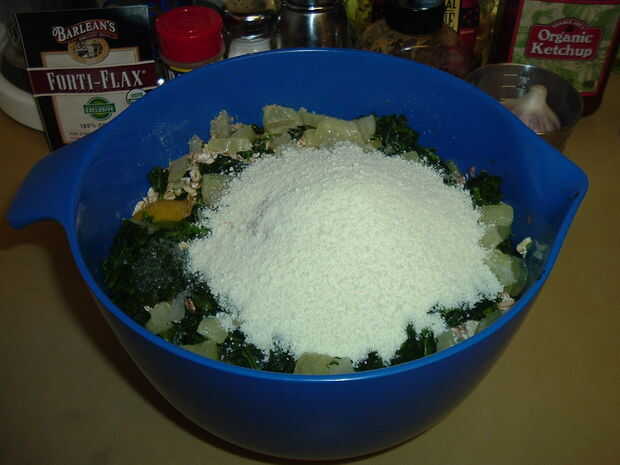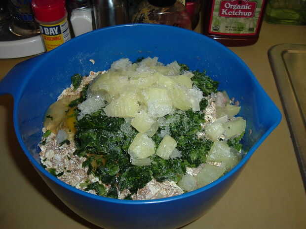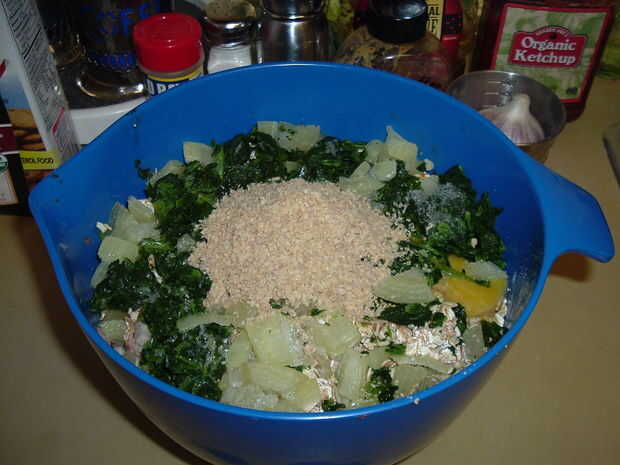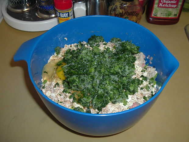Vale la pena probablemente aproximadamente 2 tazas de en conjunto de adiciones. Más tarde decidí esto no fue suficiente y añadió otra taza de espinacas (ver paso 9), trayendo el total adiciones a aproximadamente 3 tazas vale la pena.