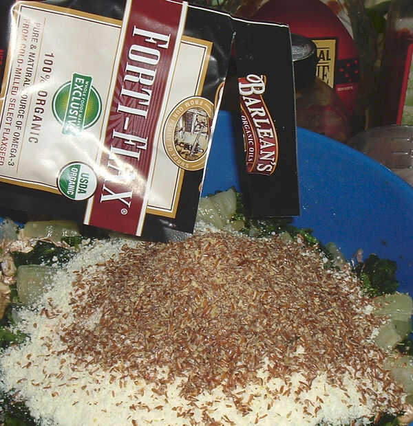 - 1 onza "Forti-lino" - esta es una de las cosas más al azar que he recibido del Banco de alimentos. Recuerdo exactamente qué comer linaza pretende hacer por mí, pero sé que se supone que para ser grandes cosas.