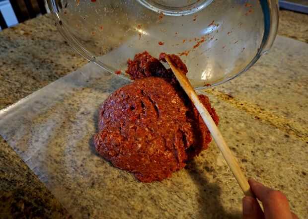 2. Agregue la mezcla de carne en una de las hojas de papel de cera.
