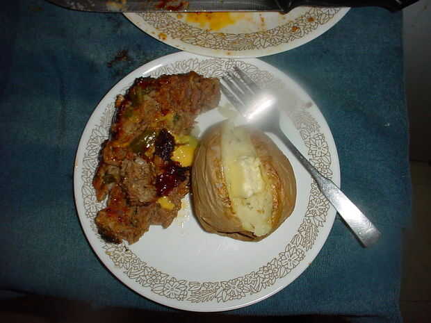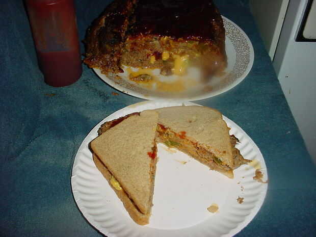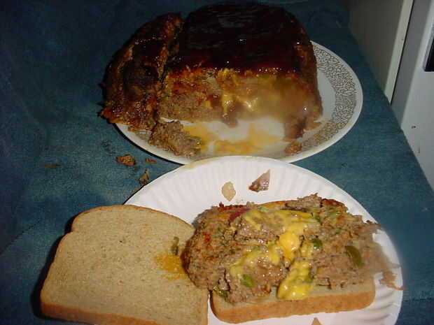 Una vez hecho el pastel de carne a su gusto, llevarlo hacia fuera y dejar reposar 10-15 minutos antes de rebanarlo o a menos que usted no puede esperar igual que yo, dejarlo enfriar luego introduzca en el refrigerador para más tarde, incluso después de 10 minutos el queso en el centro estaba todavía fundido así que ten cuidado! Hacer su emparedado y disfrutar o supuesto podría agregar una papa al horno y que sea una comida