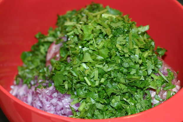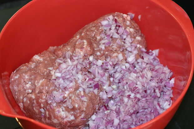 Cupcakes de pastel de carne hechos de una manera sencillaPaso 1: Mezclar los ingredientes Usé 1 y medio de libras de carne de hamburguesa1 gran Jalepeno1 pimiento amarillo3 huevosEspecias (eneldo, comino, Chile en polvo, ajo en polvo, perejil)SalPimi