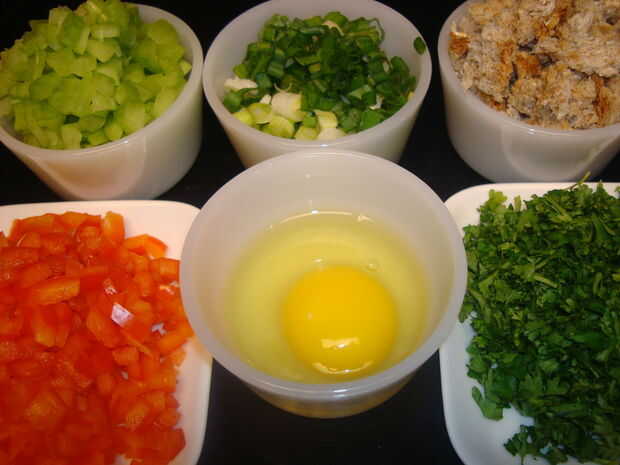 Cupcakes de pastel de carne hechos de una manera sencillaPaso 1: Mezclar los ingredientes Usé 1 y medio de libras de carne de hamburguesa1 gran Jalepeno1 pimiento amarillo3 huevosEspecias (eneldo, comino, Chile en polvo, ajo en polvo, perejil)SalPimi