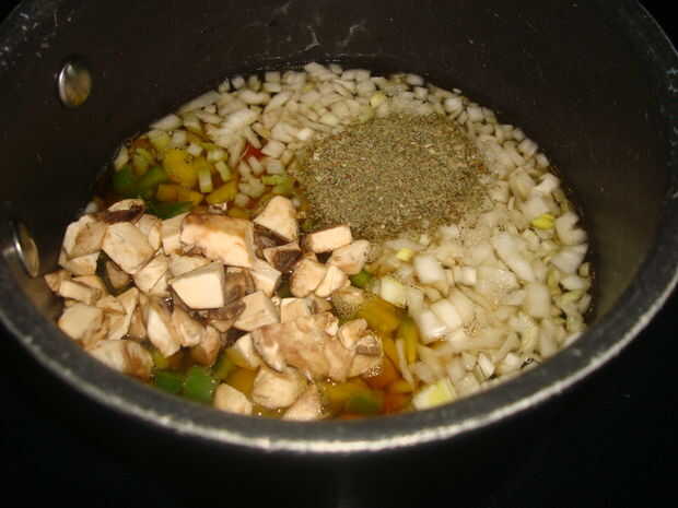 Salsa de soja, cebolla, apio, pimientos, sal y albahaca.
