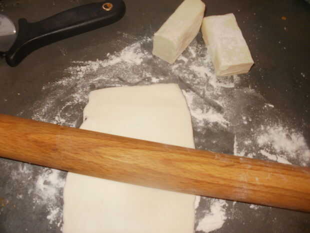 Estirar la masa más o menos el tamaño del plato de pastel.