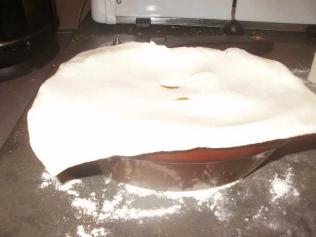 Llenar la masa en la parte superior. No quería mirar bastante. El masa se contrae ligeramente en el horno así que si papilla recortar, deja un borde de 1cm.