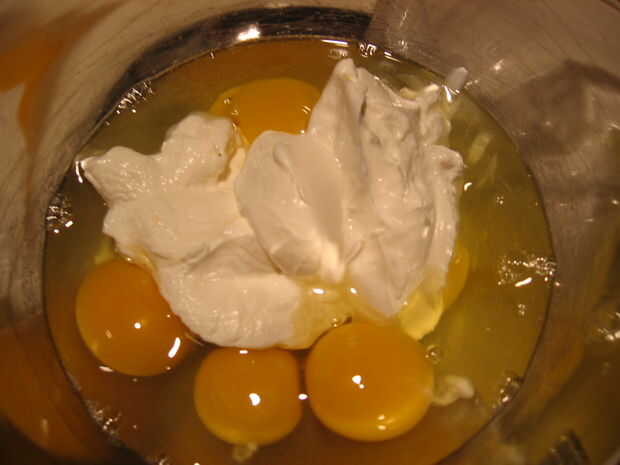 Paso 11: Bata los huevos y la crema agria