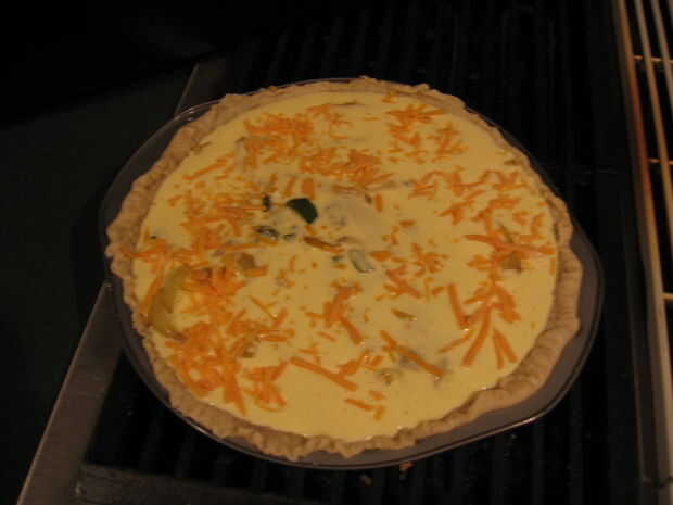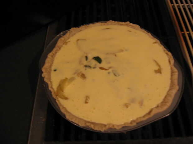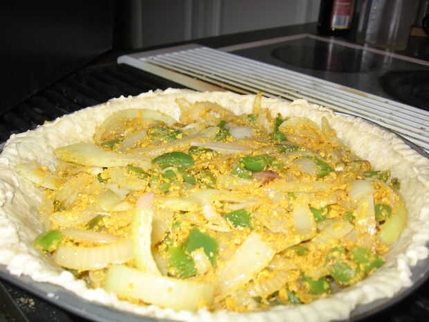 Paso 12: Verter la mezcla en la tarta de cebolla, luego cubra con la mezcla de huevo
