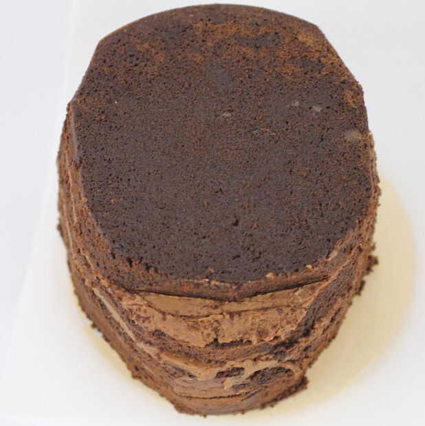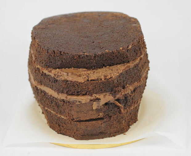 Cubrir la torta tallada con una capa de ganache y hace tan liso como sea posible. Si es necesario puede que necesite hacer esto en más de una etapa cubierta de ganache, alisar con una espátula o cuchillo caliente y después repitiendo el proceso.