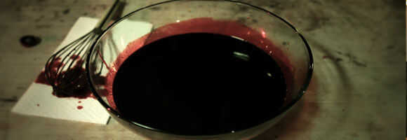 2) añadir el colorante rojo. La cantidad depende de cuánto jarabe de maíz de su uso y lo oscuro de una sangre que desee.