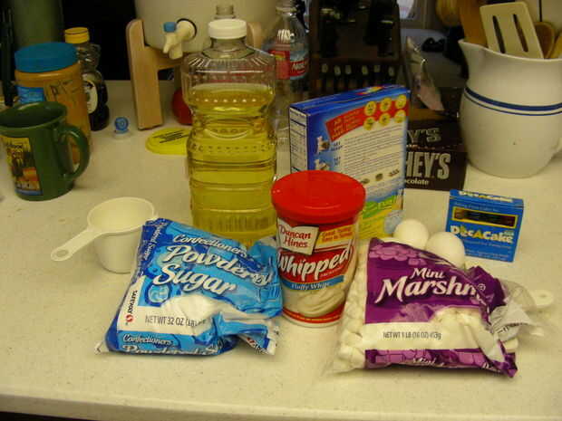 1. pastel de mezcla + ingredientes necesarios (siga las instrucciones de su receta o caja)