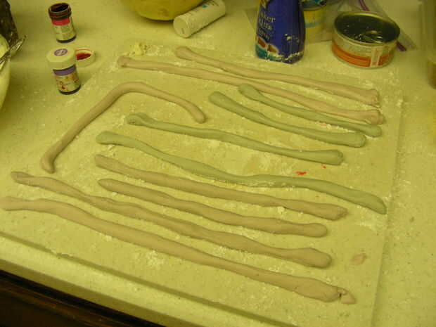 rodillo el fondant en tiras delgadas de varias longitudes y espesores.