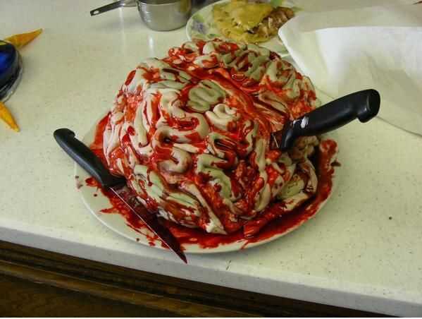 mi tía y me hizo este asqueroso pero pastel de cerebro deliciosas... Bien al principio era sólo sangre, luego mi tía decidió añadir en el tejido y sangre coagulada y delgado bacterias verdes... ESTA COSA PARECE BRUTA!!!! Mi tía parecía pensar que era