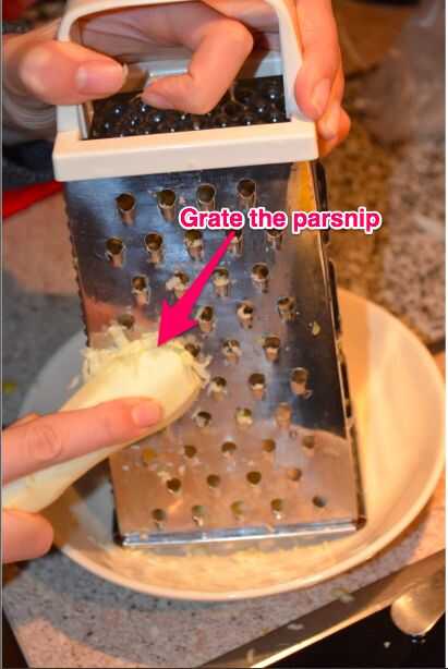 Rejilla 1 chirivía ½ para que llene hasta una taza y dejar esto de lado. Uno para ello, precalentar el horno a 177 ° C o 350° F. Te recomiendo que también triturar la piña fresca en esta etapa, esto reducirá la cantidad de tarea que tendrá que hacer más adelante en la etapa de creación.