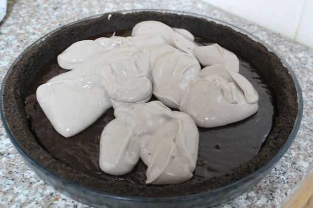 Vierta esta mezcla encima de la mezcla de chocolate.