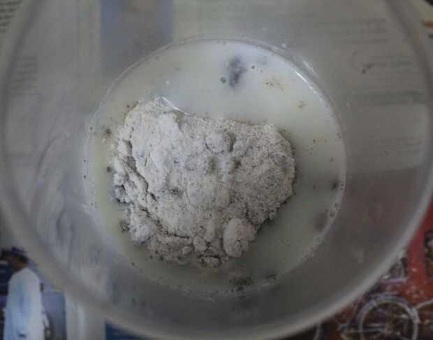 En un recipiente, agregue 1 taza grande de leche fría y Oreo con leche mezclan. Batir hasta que la mezcla espese.