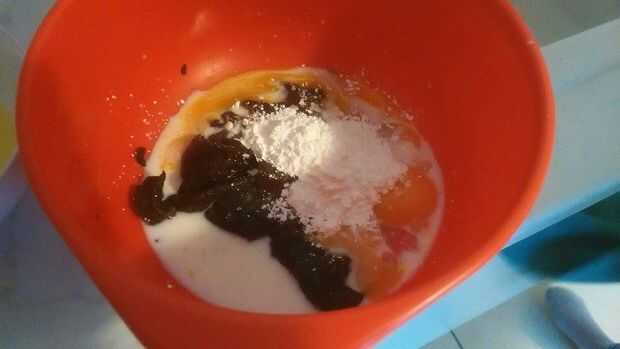 Paso 3: Doe een anderhalve soeplepel maïzena, 3 eigelen, 2 soeplepels melk en gesmolten de chocolade en een mengkom.