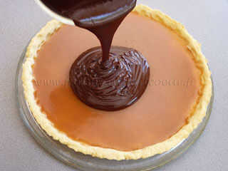 Verter sobre la tarta y extender la misma forma que el caramelo (rotando la tarta).