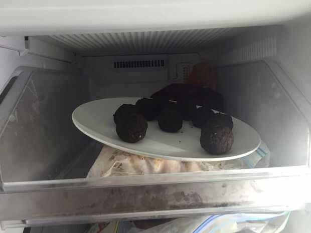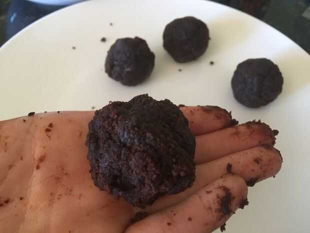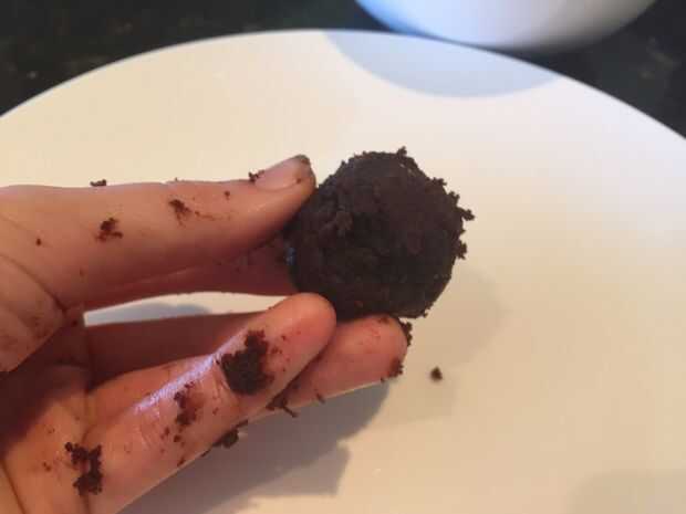 Coloque las bolas en el congelador durante 10 minutos para endurecerse mientras hacemos la cobertura de chocolate derretida.