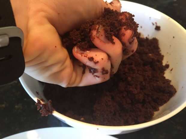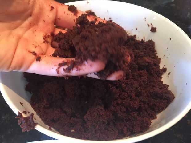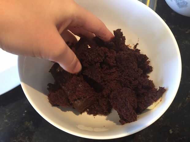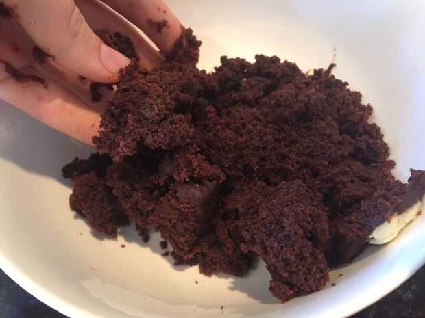 Ahora añadir el glaseado a las migajas del pastel. Si usted está usando un bizcocho seco, necesite 2-4 cucharadas. Si está usando un pastel que ya tiene el helar, como entonces lo estoy usando un pastel de lodo no necesita agregar el glaseado.