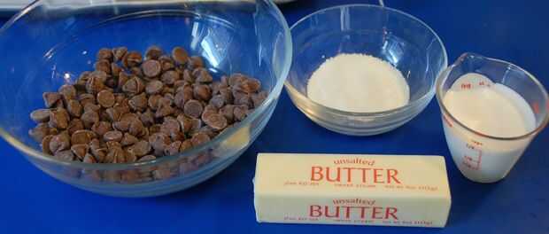 Coloque el chocolate en un tazón mediano y reservar. Calentar mantequilla en una cacerola sobre fuego medio-bajo. Cuando se derrita, agregue la leche en polvo. Cocine hasta que los sólidos de leche comienzan a marrón al color de tostado. Retire del fuego y agregue la mitad y mitad. Verter sobre el chocolate mientras todavía muy caliente. Deje reposar 2-3 minutos para derretir el chocolate y revuelva hasta combinar. Cubierta con plástico y dejar a temperatura ambiente (o lugar en la nevera hasta que casi la mitad de la mezcla esté firme). Cuando se establece, revuelva hasta que esté suave. Use inmediatamente.