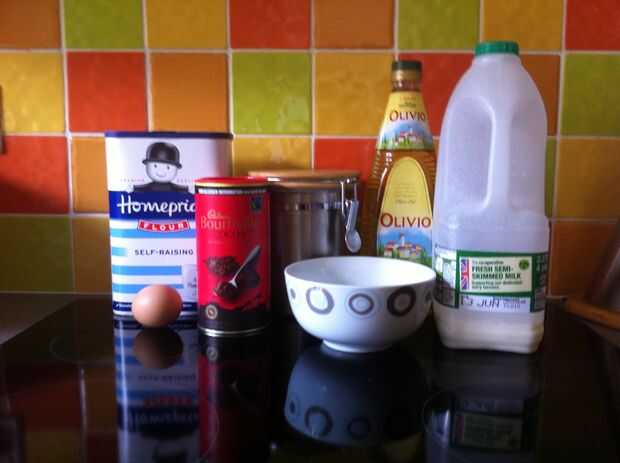 Este es probablemente el más fácil y más delicioso pastel de chocolate que he hecho!Toda mi familia les encantó y estoy seguro que tú también lo harás!Paso 1: Lo que se necesita... Ingredientes:155 g de harina de la torta200 g de azúcar40 g de cacao2