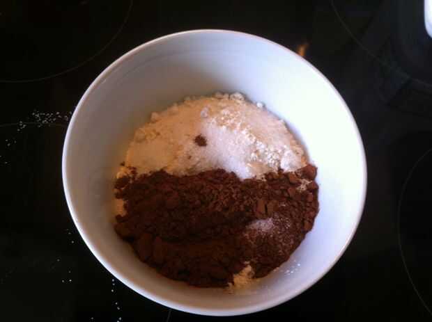 Mezclar los ingredientes secos harina, azúcar, cacao