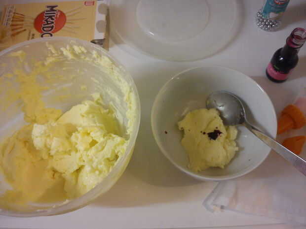 Mantenga la mantequilla a temperatura ambiente por una hora y dos para que sea más suave. Luego mezclar la mantequilla con la batidora añadiendo poco a poco la leche condensada. Después de mezclar la mantequilla con la leche condensada agregar vainilla y esencia de Ron a la mezcla y se mezcla. La mezcla está lista!