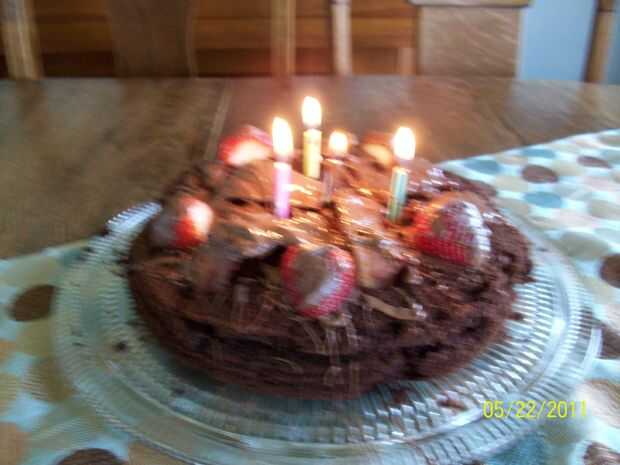 Convirtiendo literalmente el concepto de pies boca abajo! Para tomar su forma, este pastel en forma de una barra de chocolate se cuece al horno en 8 agujeros un poco profundas 12 hoyos cuadrados muffin/brownie (cada cuadrado 2-1/4 "x 2-1/4" x 1&