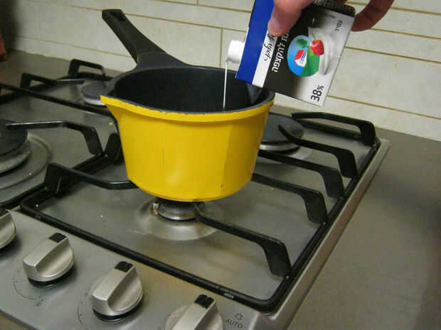 Poner en la llama pequeña y mezclar hasta que todo se disuelva. Vierta sobre el pastel.