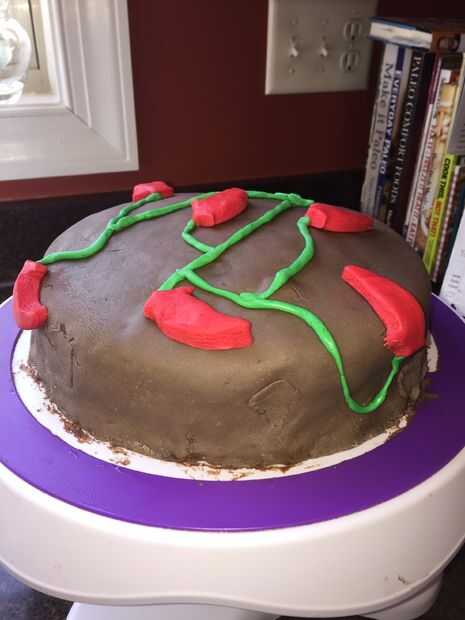 Aquí está Cómo hice un pastel de chocolate de tambor para la esposa de un compañero de trabajo. Realmente parece su tambor favorito real.Paso 1: pastel Hacer pasteles de chocolate. Los grandes! Poner en un tablero de la torta y cubierta de glaseado d