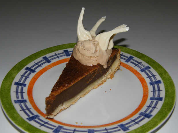 Pastel de chocolate oscuras estilo Nueva York es una de las tortas de chocolate más oscuras, más rico y más densas que nunca tenga el lujo de comer. Que consiste en capas de esponjoso pastel separados y cubierto por una escarcha de natilla-como grues