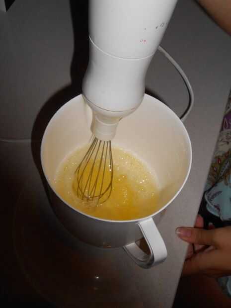5. batir las yemas de huevo y la esencia de vainilla en un tazón separado.