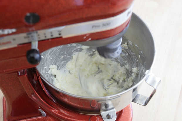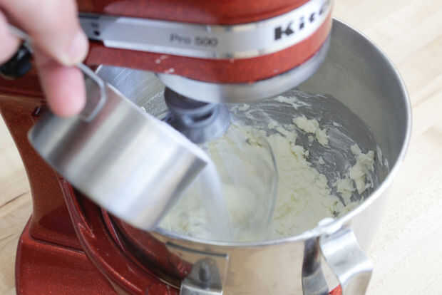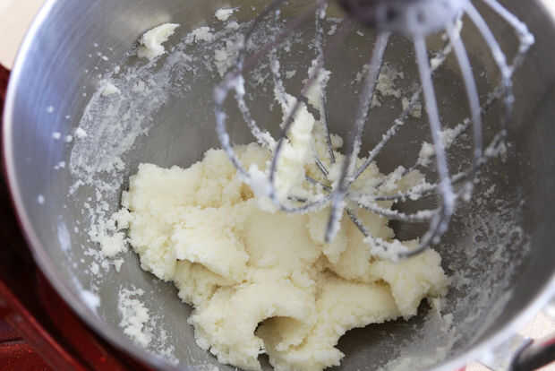 Con una batidora y bate accesorio (o batidora), crema a la mantequilla, aceite vegetal y azúcar hasta que empieza a conseguir aparentemente ligero y esponjoso.