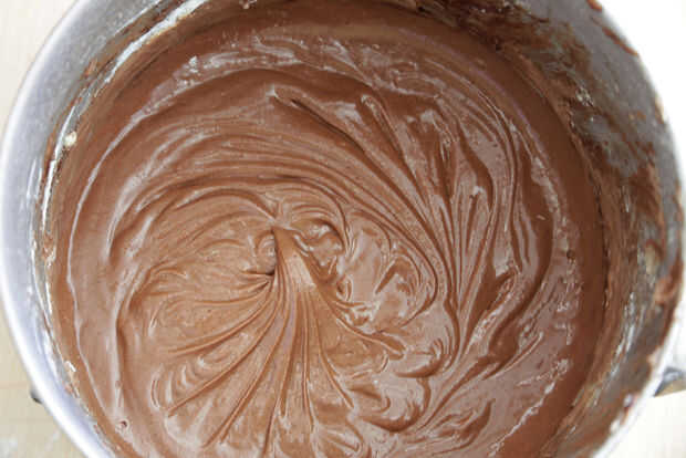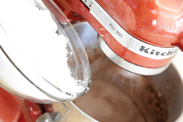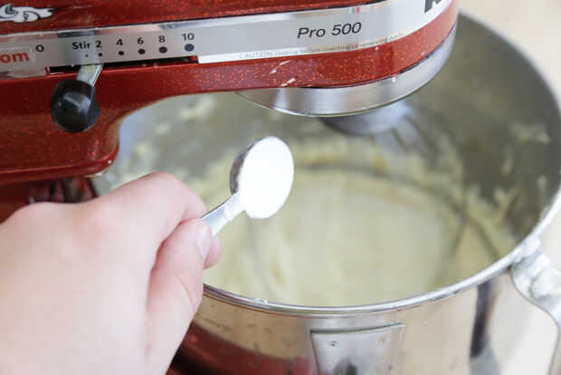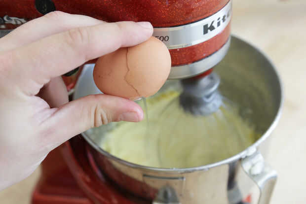Poner la batidora en velocidad baja y añadir los huevos, mezclándolos en uno a la vez.