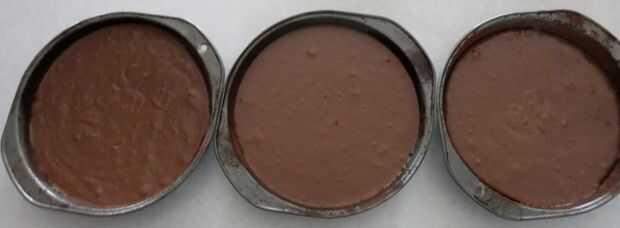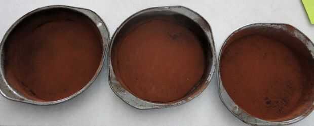 Engrasar tres moldes de pastel de 8 pulgadas de ronda con mantequilla; sartenes de polvo con harina y llamo los excesos. (Engrasan los moldes con un spray para hornear, forrado en pergamino, volver a rociar los recipientes y espolvoreado con cacao en polvo.)