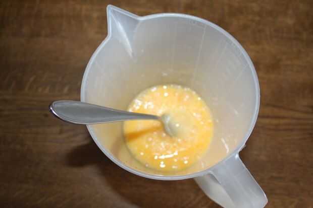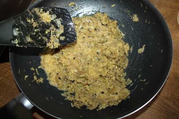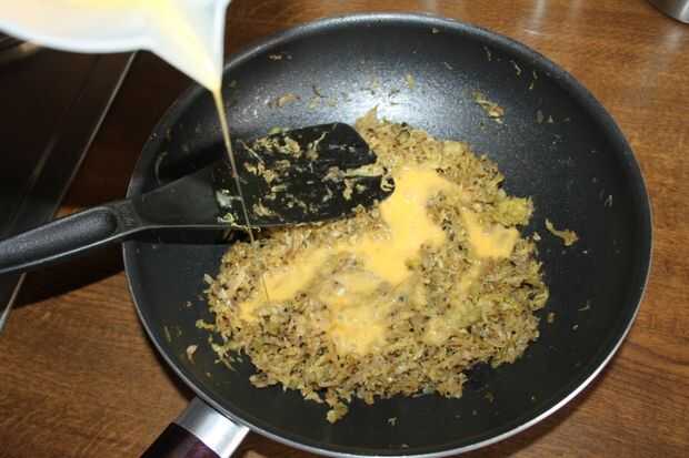 Batir ligeramente los huevos y agregue a la mezcla de col que ya se enfría.