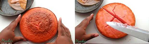 Comience por cortar la capa de pastel por la mitad. Voltee cada pieza y difundir helar en ambas mitades.