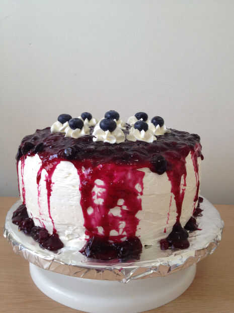 Pastel de crema de arándanos y coco