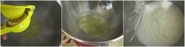 En un bol, poner 2 claras de huevo y exprima el jugo de limón 1 cucharadita para hacerla más estable. Batir la clara del huevo hasta el pico suave.