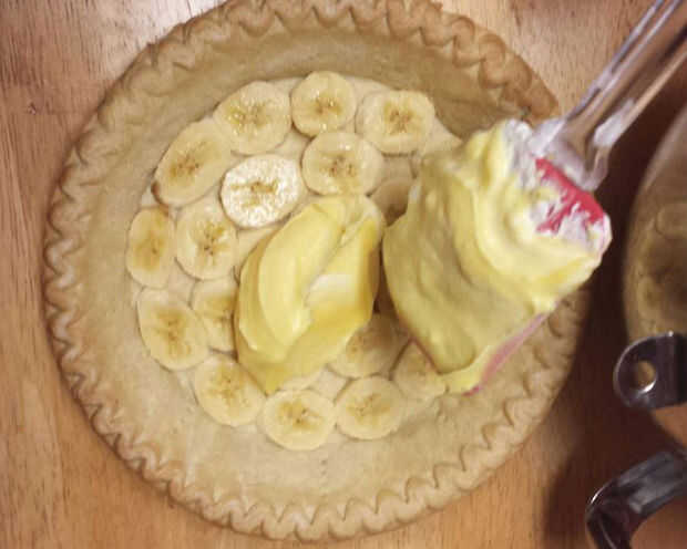 esta receta hace un pastel de 9 pulgadas.Ingredientes2 1/4 tazas de leche fría1 paquete (6 - tamaño de la porción) Jell-o Vanilla sabor de pudín instantáneo y relleno de la empanada1 horneada (paso 1 se ocupará de un crudo) tarta de 9 pulgadas2 pláta