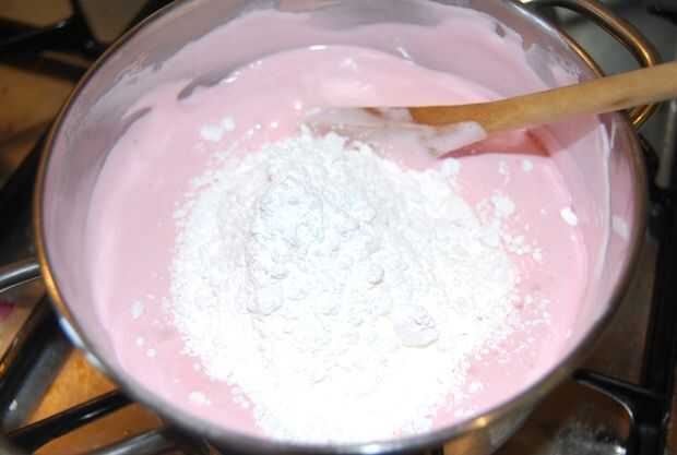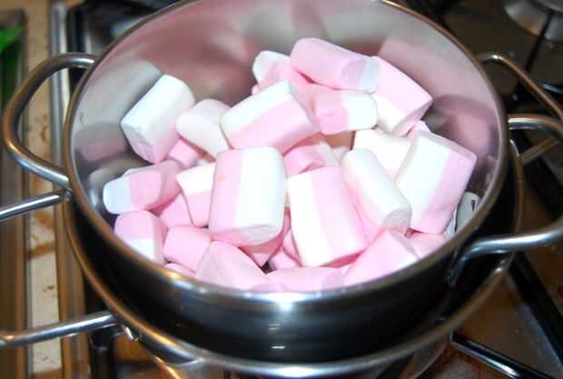 En una cacerola doble calienta los bombones con el agua Una vez que se derrita apagar el calor. Añadir 125 g de azúcar en polvo y mezclar hasta que con una cuchara de madera.