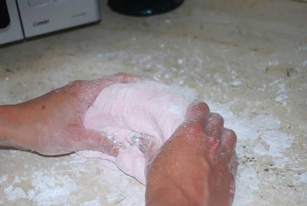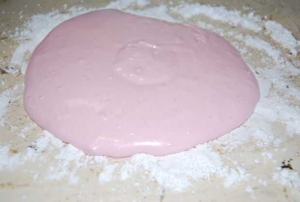 Lugar la masa sobre una superficie cubierta con azúcar en polvo y kneat con más azúcar (mantener las manos cubiertas con azúcar en polvo para el malvavisco no se pegue en los dedos). Seguir haciendo así hasta haber incorporado todo el azúcar que tienes.