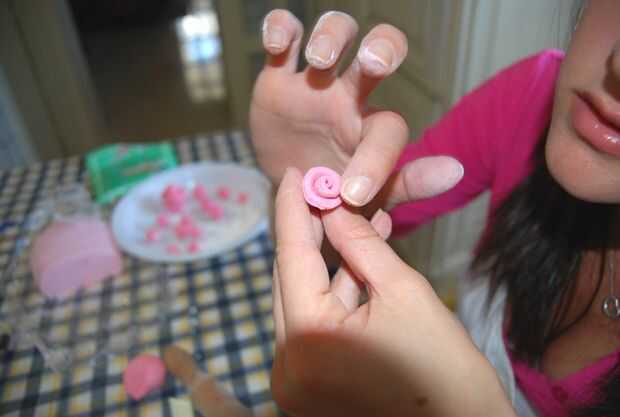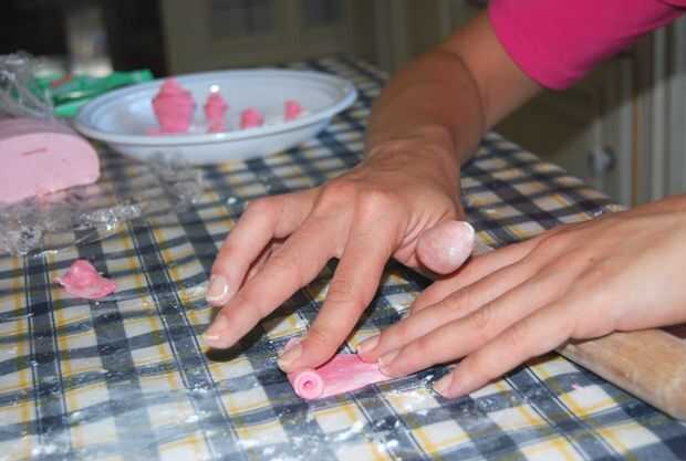 Tomar un pequeño trozo de masa y presionar, luego enrollar de un extremo a otro.