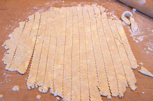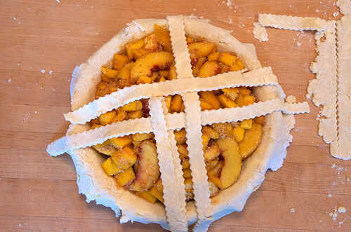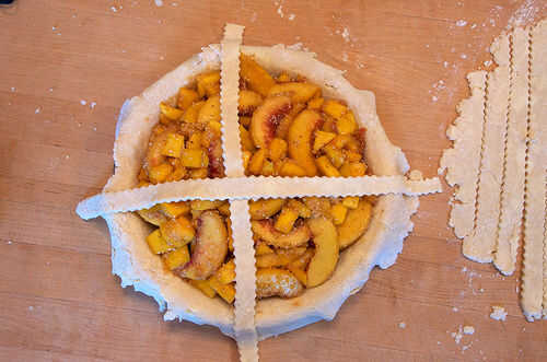 (En realidad, si desea dejar la mitad las tiras en una dirección y la otra mitad perpendicular, sin tejer, funciona también. He visto que conoce como una "tapa de enrejado de la falsa", y todavía aspecto y sabor finas.)