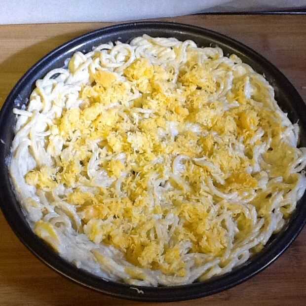 Se trata de una cena fácil y fácil sobrantes. Agregar pasta de granos enteros puede ayudar a hacer más saludable. Ningún comentario sobre lo probará...necesario,Pasta de espaguetisSalsa de tomateQueso mozzarellaHornoPlato pastelPrimer paso es cocer l