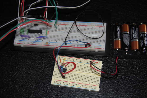 Estoy alimentando con 4xAA pilas en un soporte de batería de Radio Shack. Mi criterio de diseño para seguridad es que el ladrón de luz del LED debe ser frío - no calor generado. Por lo tanto estoy recomendando que cada llama de la vela debe tener una resistencia de 200 ohm en el circuito de LED (resistencias de 9 x 200 ohmios). Uso de la función de parpadea, 555 temporizador y sensor de luz ambiental regulación todo enfriar el ladrón luz LEDs porque los LED no brillan lleno-hacia fuera.