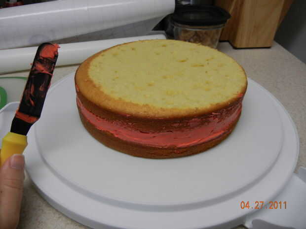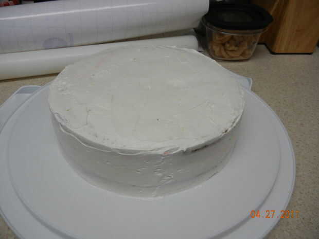 Nota: Si prefiere enfriar la torta después de helarlo pero antes de colocar el fondant en la parte superior, realmente debe hacer el glaseado perfecto porque será más difícil cuando su frío. NO tienes que enfriar el pastel y generalmente no funciona muy bien.